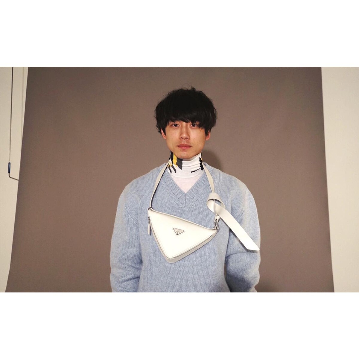 坂口健太郎在Prada秀場上還曾嘗試過高領衫的造型,許多女生都對男生穿高領衫毫無抵抗力,除了提升紳士感、精緻感,也能讓臉部下顎線條更鮮明,絕對是男士們秋冬衣櫥不可少的單品。