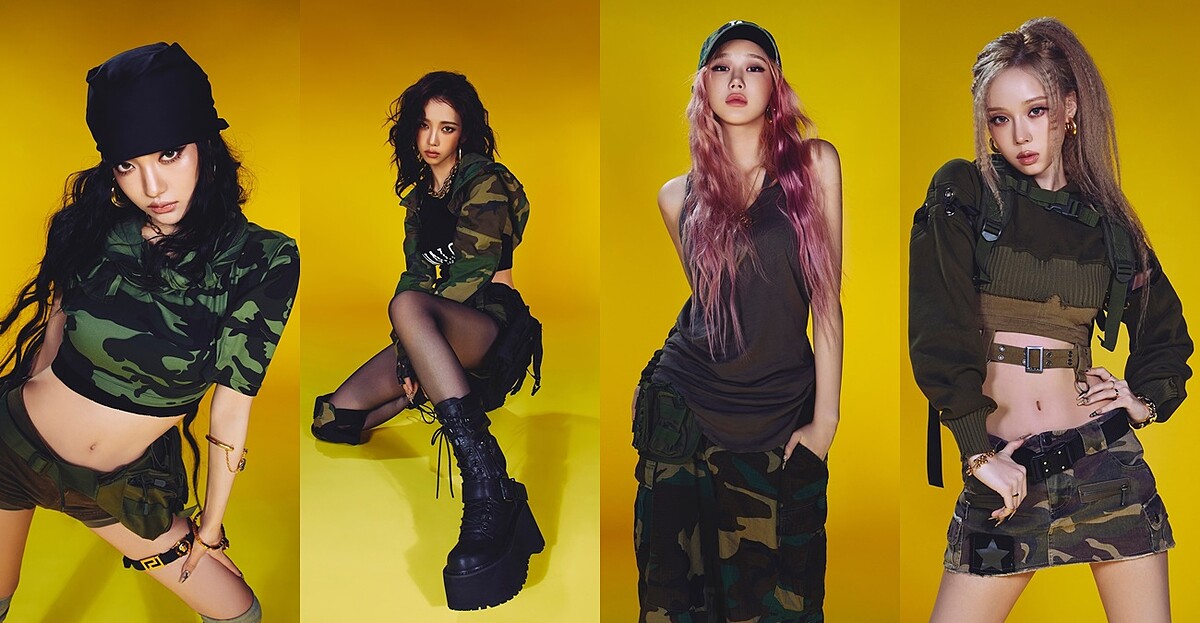 在迷你專輯《Whiplash》的概念造型中,成員們的妝造都會圍繞一個鮮明的主軸,提升團隊的整體性,同時也給人一種女戰士的形象。其中一組造型裡,全員都換上迷彩圖案的各式服裝,搭配上戰術小包、軍靴、露指手套……和一些繫帶、護具的元素,化身麻辣女兵!