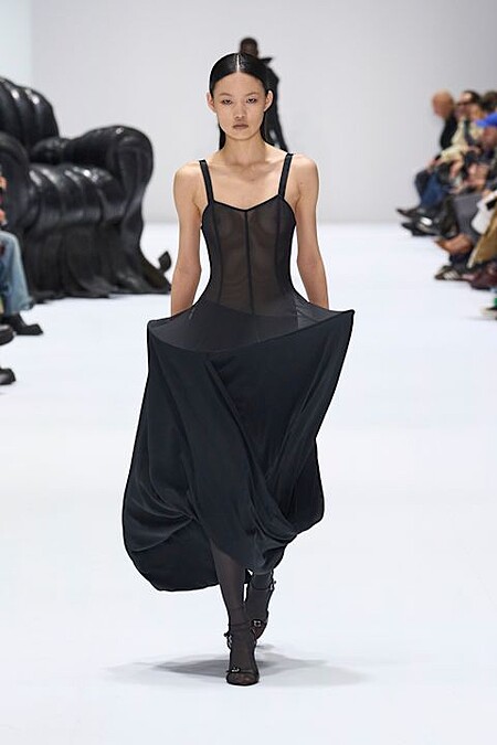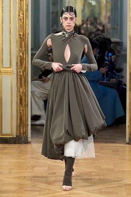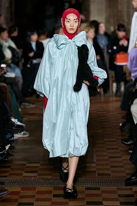 Simone Rocha 在 AW24 上,將浪漫的芭蕾元素融合宮廷風格,巴拉克拉法帽的搭配讓造型不過於可愛,反倒多了點實用性的個性氣息。