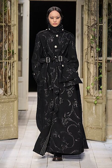 擅長打造古典與浪漫主義的 Antonio Marras,在本季用上帶些歌德元素的樣貌呈現,超長版外套與略為寬鬆的剪裁結合古典圖案,無論男女都可穿。
