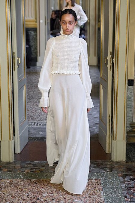 Blumarine 在本季則以極簡輪廓詮釋了宮廷風格的樣貌,優雅的線條與精準的剪裁比例,展現女人的身形與絕佳氣質。