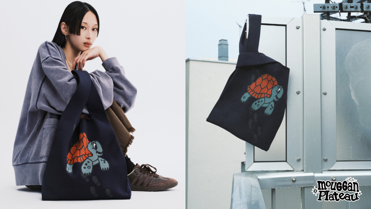 這款烏龜托特包的材質如同毛衣,厚磅質感加倍,上頭更有本次聯名的烏龜提花圖案,細節毫不馬虎。