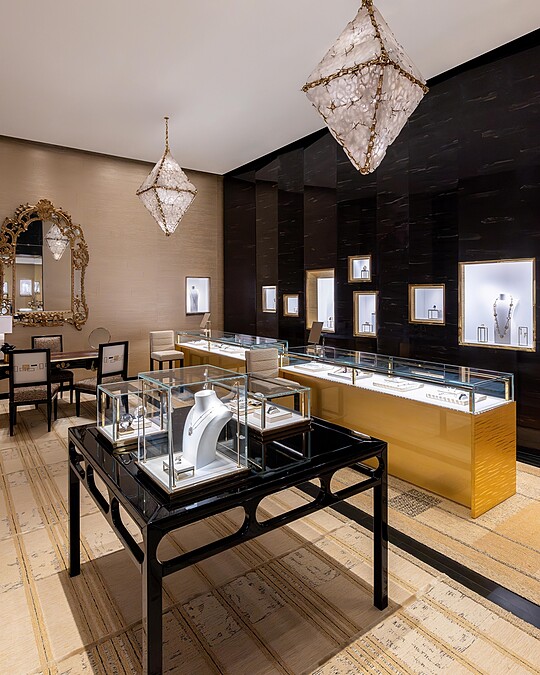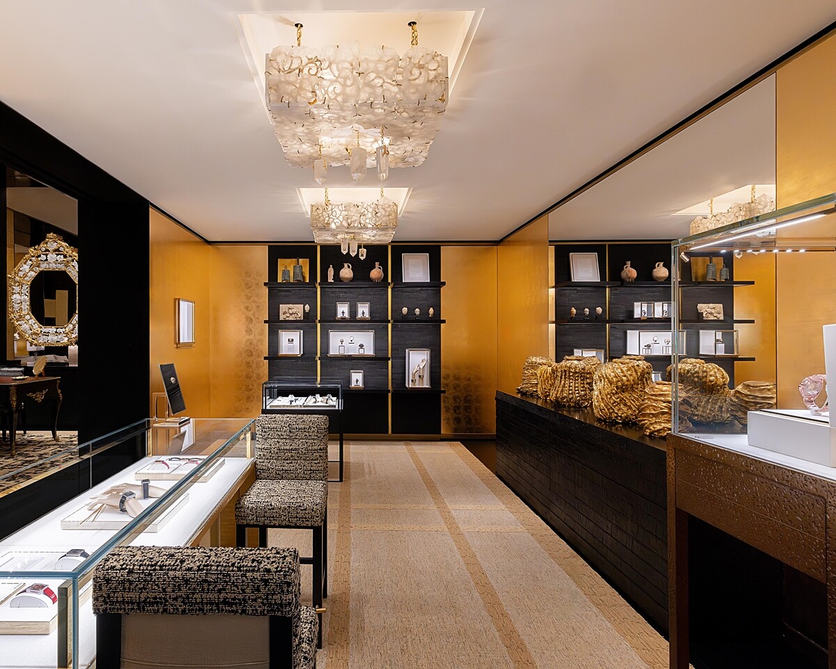 香奈兒台北101旗艦店空間巧思與巴黎總店同樣出自大師Peter Marino之手,擅長將時尚風格、藝術和建築多重元素融合的他,以純粹簡約的線條、聚焦於藝術和工藝的主軸靈感,共組出摩登又親暱,當代版本的香奈兒女士一方世界。像是,以金色、黑色、白色和米色的主色調,再點綴著香奈兒女士鍾愛的水晶材質,台北101精品店內裝風格與巴黎康朋街31號遙相呼應,精選的當代藝術創作、骨董及訂製家具和多盞由巴黎知名金匠工坊 Goossens 特意打造的吊燈點亮空間。此外,香奈兒品牌調香師奧利維耶·波巨(Olivier Polge)也為此空間設計一款專屬香氛,交融馥郁的琥珀香調與鳶尾花的優雅氣息,以嗅覺完美點綴這場奢華體驗。