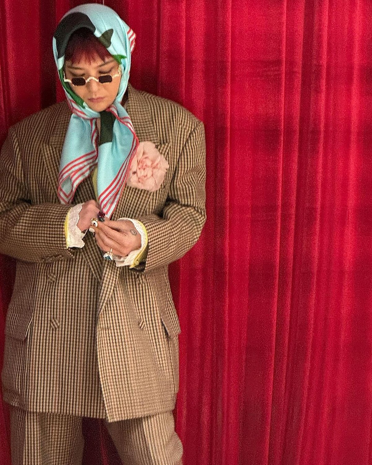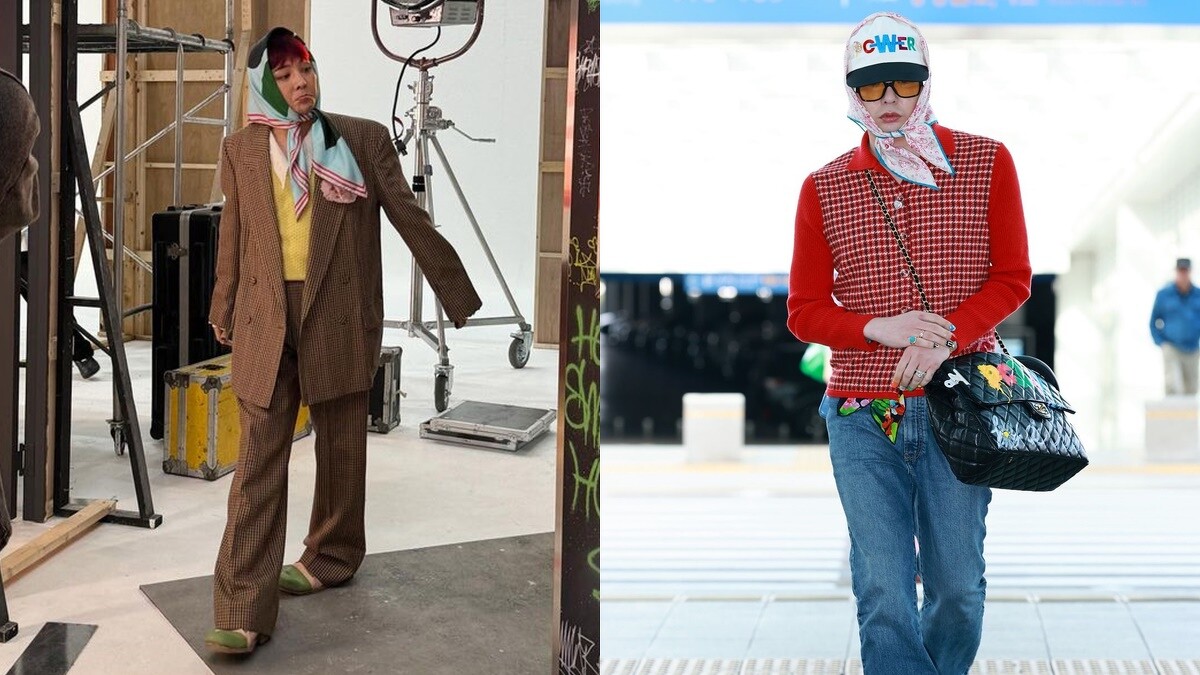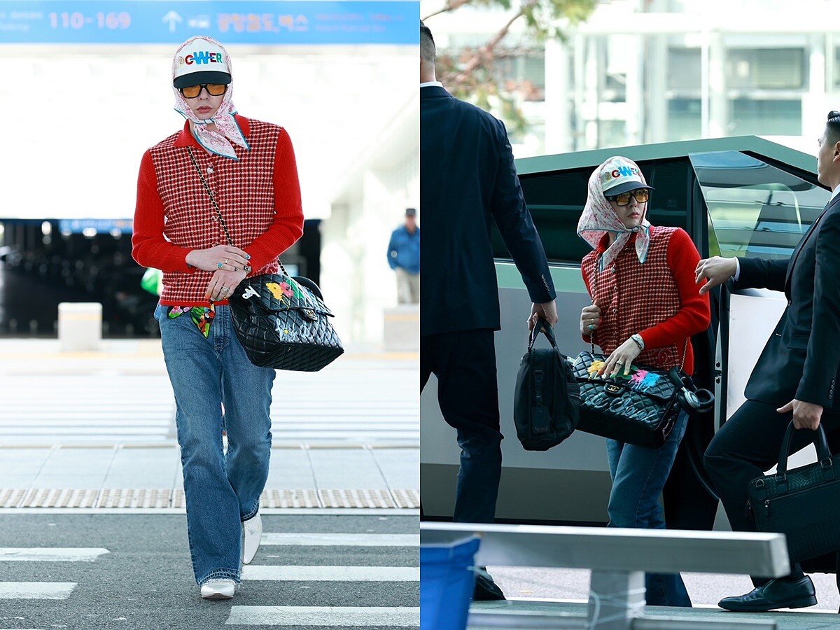 11月4日GD現身仁川機場,被捕捉到從特斯拉新款車Cybertruck走下來,準備前往香港參加Chanel 2024/25度假Replica大秀。只見他延續MV中引起話題的絲巾+帽子造型,將Chanel 2023早秋的絲巾裹在他的POWER帽子外側,身上的合身紅色千鳥格紋衫,同樣是Chanel女裝的作品。有些網友一看便聯想到「開喜婆婆」,還有人想到阿翰的房東阿姨角色!足見這樣的「奶奶風格」已經是他近期的最愛穿搭,不論你是否看得懂,都無法否認它已成為時尚的焦點話題。