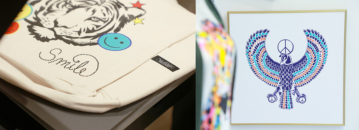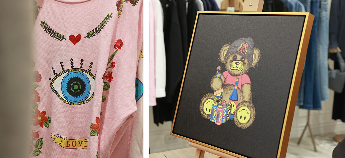 Lily:起初是很偶然地看到他們的作品,便被其細膩的手作工藝吸引,它們不像普通印刷的圖案T恤,而更像印在服裝上的藝術品。Lauren的印刷全手工製作,每種顏色都是單獨上色,一件衣服至少有七到十多個不同顏色的網版工序。也因為是手工製作,耗損率很高,也能感受到他們對品質的要求非常嚴格。我們與LAUREN MOSHI兄妹合作16年來,早已像家人般的親近,我幾乎每個月都會去拜訪他們的工坊,掌握台灣獨家的限量聯名單品進度,彼此有著非常密切的情感。