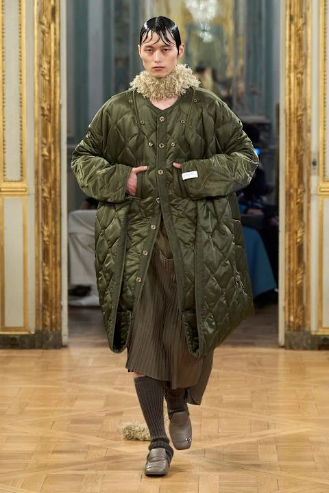 如果你在煩惱今年冬天如何運用羽絨單品穿出時髦感,那不妨參考擅長現代解構的新銳設計師 Rokh 的秀上造型,受到時髦精喜愛的菱格紋鋪棉外套搭配百褶裙與樂福鞋,同色調並深具層次感。