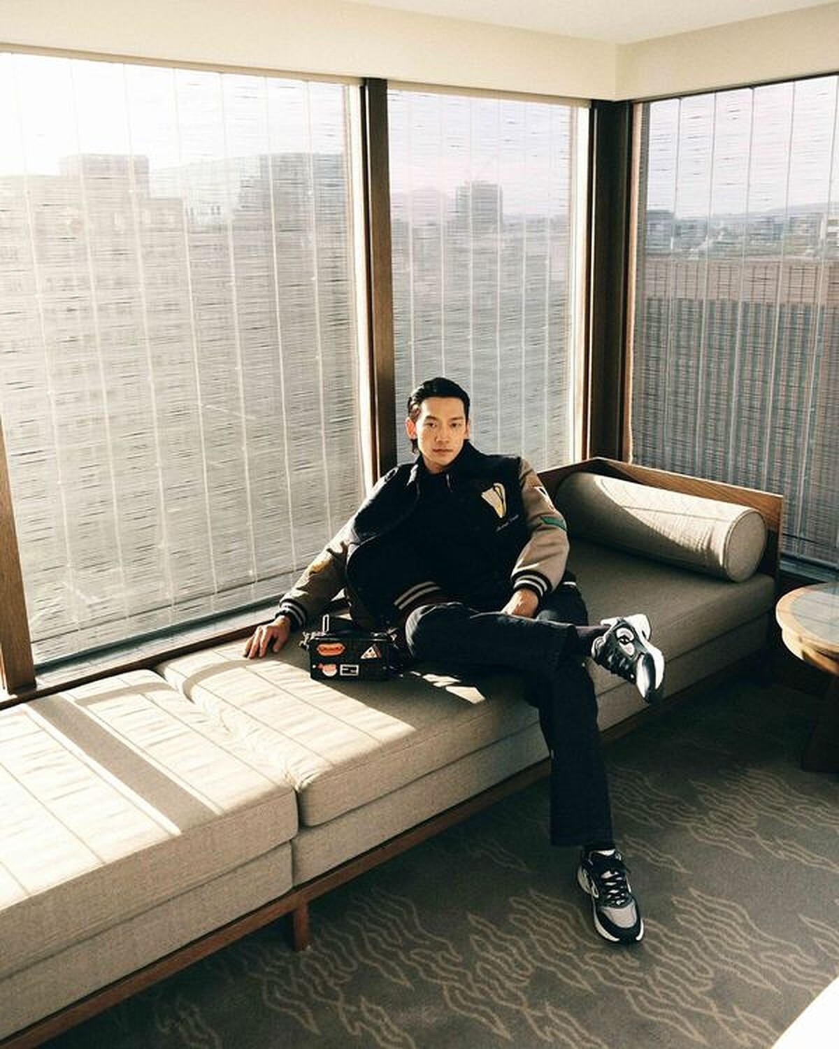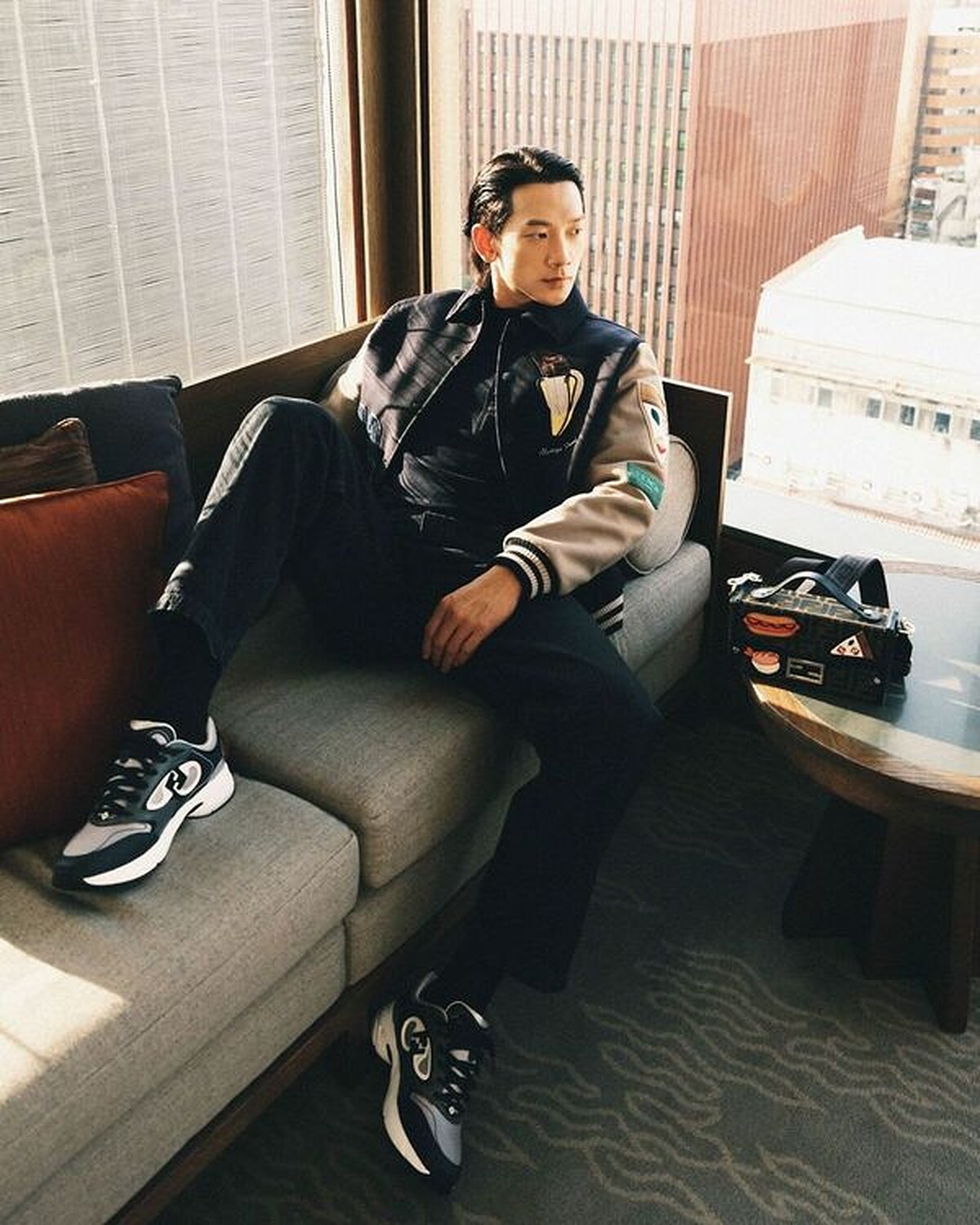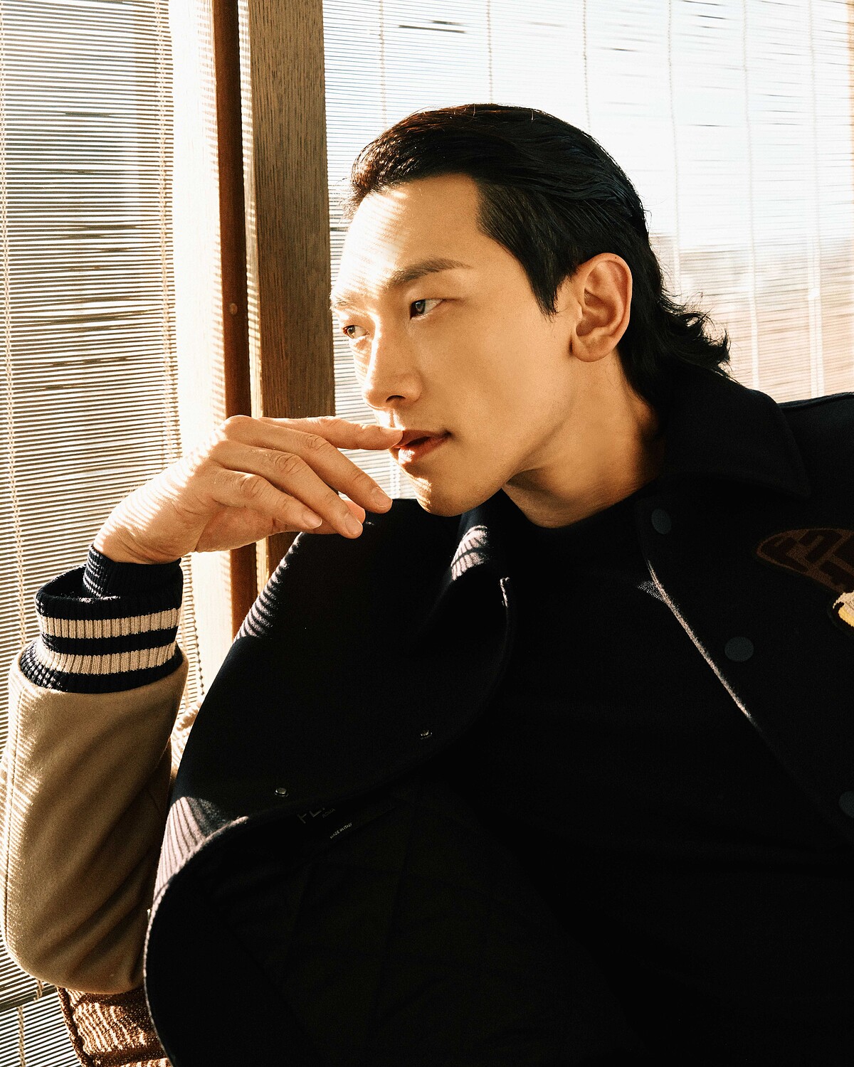 可以在系列形象中看見 RAIN 身著棒球外套搭配科技感球鞋,俐落的服裝剪裁展現他的好身型,深色調也帶出內斂的成熟品味。