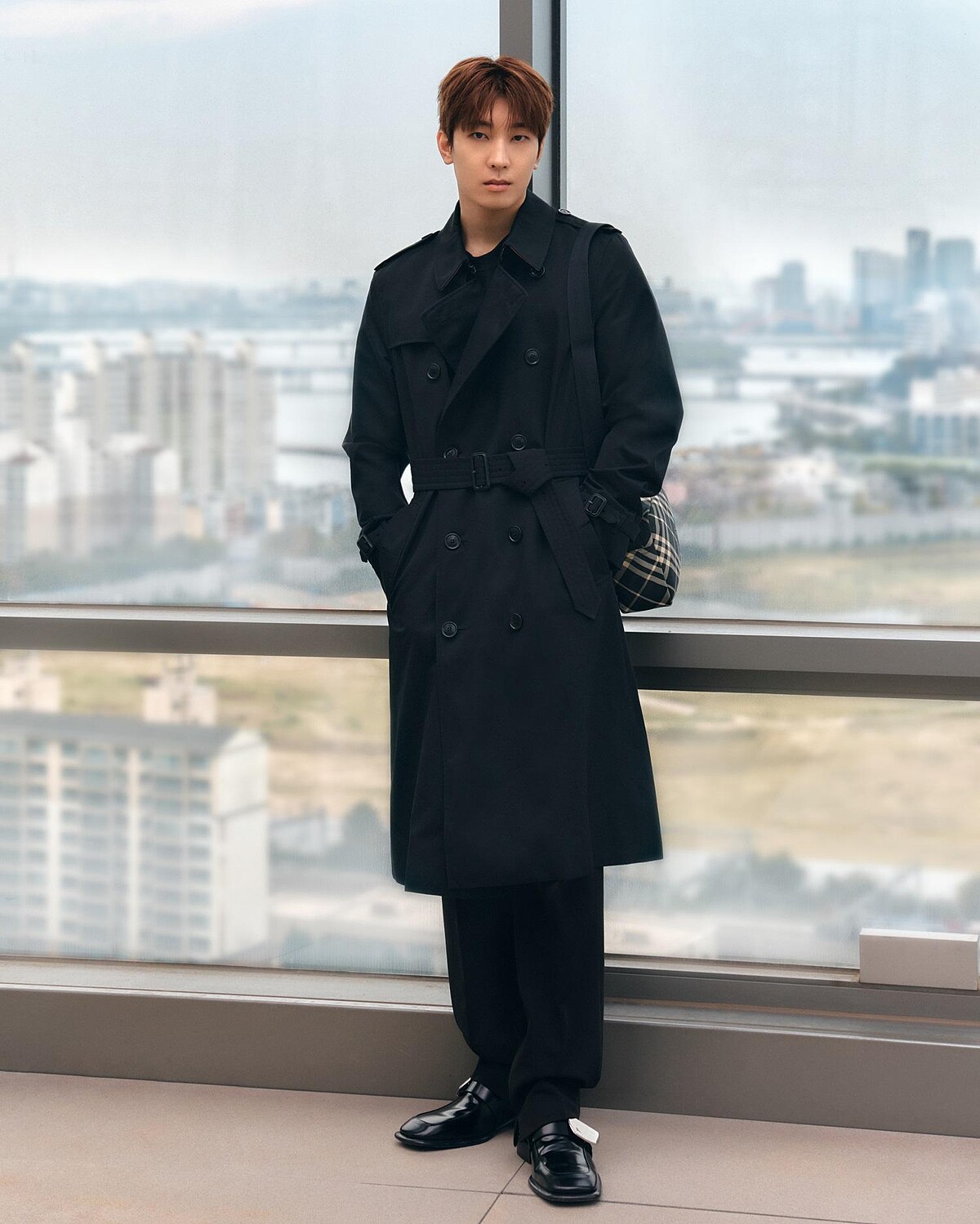 除了經典的風衣樣貌,韓國超人氣男團 Seventeen 成員全圓佑則選擇全身單一深色系的風衣造型亮相,俐落的服裝輪廓展現屬於他的好比例與摩登帥氣!