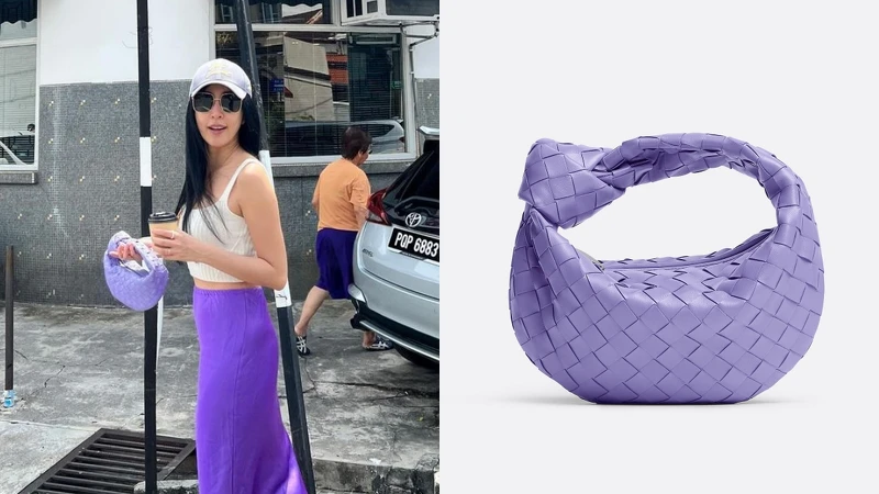 楊謹華的另一款夏日包選擇的是Kalimero Città包款,這款以Intreccio工藝皮革編織製作的單肩包,搭配滑動肩帶和金屬色飾釦細節,是精緻又大器的包款,同樣的包型楊謹華還有另一款湖水藍的色系。