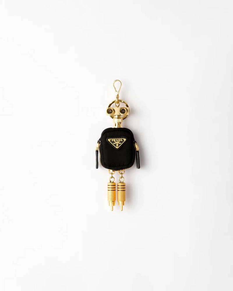 跟隨著包袋掛飾的熱潮,品牌紛紛推出諸多吊飾系列,更藉此注入品牌經典。Prada官網便一次上新了多款全新吊飾!品牌為人熟知的機器人不只成為貼圖主角,在本季還化為變裝娃娃,推出多種不同造型模樣的機器人吊飾,經典的金屬機器人以Saffiano皮革點綴,因應冬季氛圍,機器人們也逐一穿上羊毛衫、針織衫、燈心絨外套等材質的外衣,用2、3隻不同角色的吊飾來疊搭,還能營造出更豐富的趣味,讓你的手袋充滿個人特色。