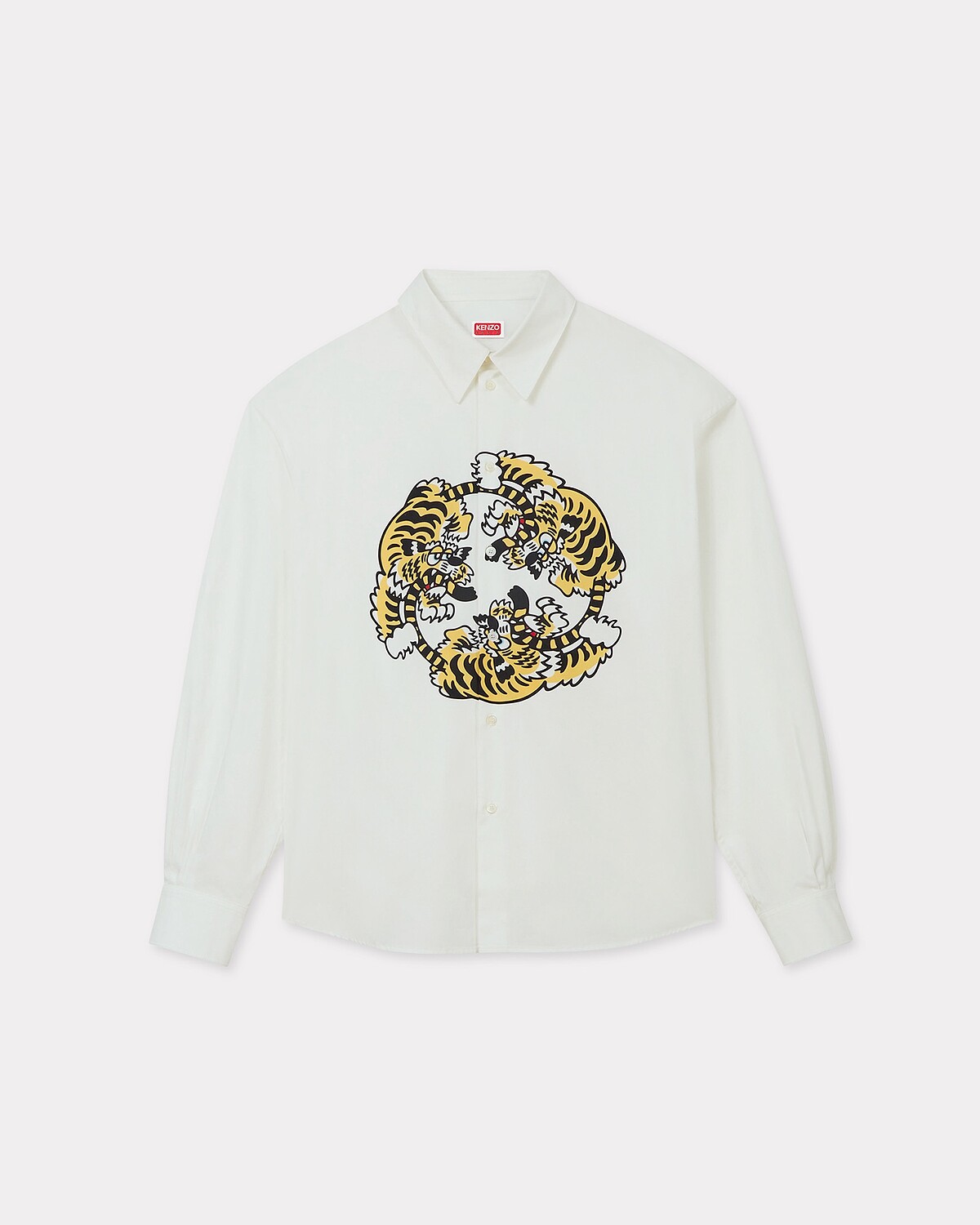 三位新角色便成了Kenzo Verdy Market系列的主角,被印製於T恤、襯衫、外套上的刺繡和針織毛線衫,男女服裝延用Verdy的招牌字體,並加入了冬季應景的積雪效果,重新演繹Kenzo的品牌經典之餘,還悄悄讓老虎戴上聖誕帽,準備和大家一同迎接年底的狂歡!