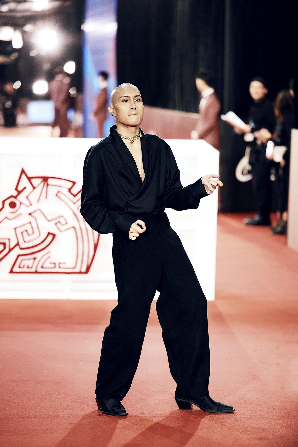 黃宣以一身鬆弛感拉滿的黑色造型亮相紅毯,自在不造作地展現率性風格。