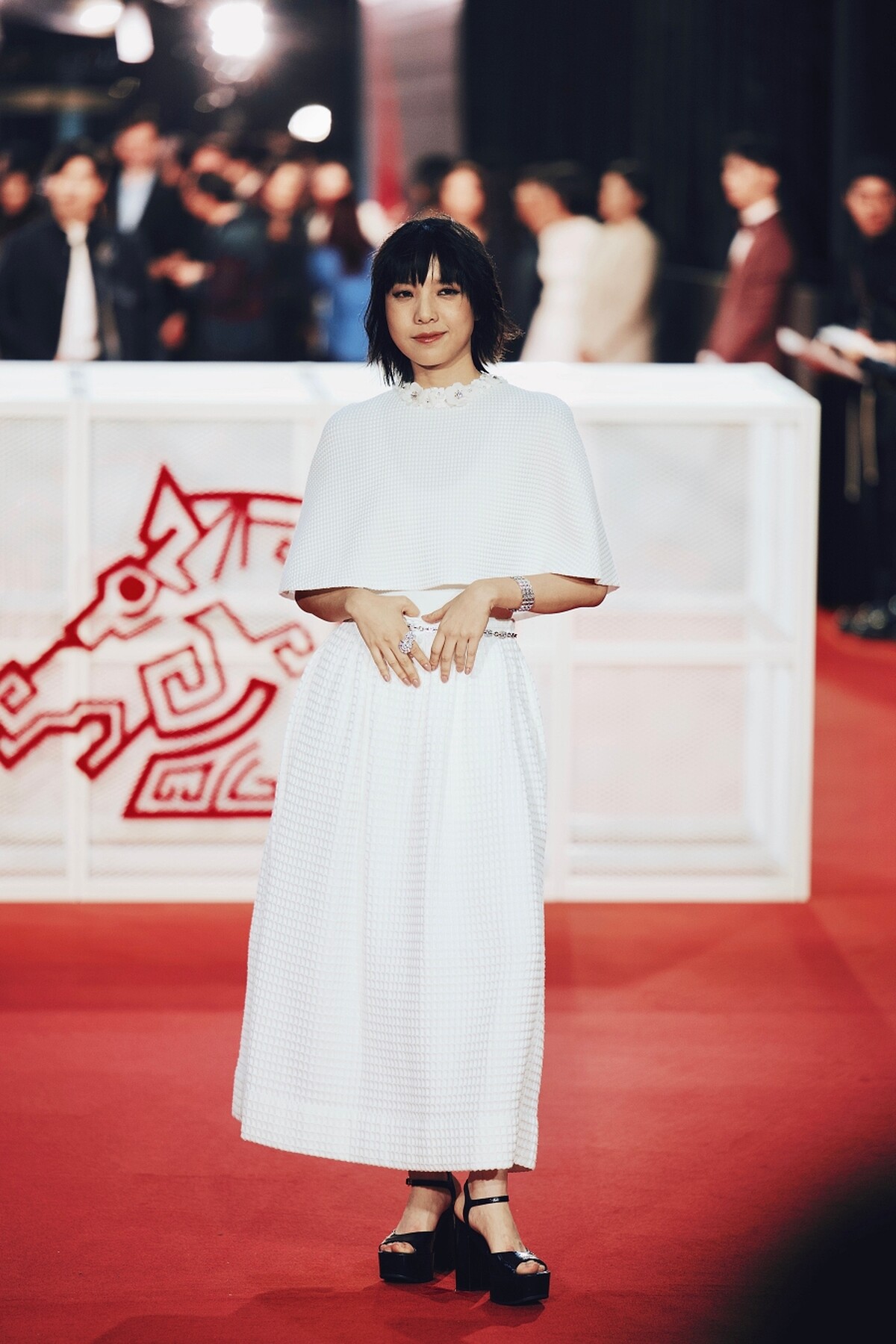 過去曾以《窄路微塵》入圍第59屆金馬獎最佳女主角的袁澧林,本次來台擔任頒獎嘉賓,一襲白色鏤空禮服,搭配一頭齊耳短髮,展現輕盈優雅的造型。