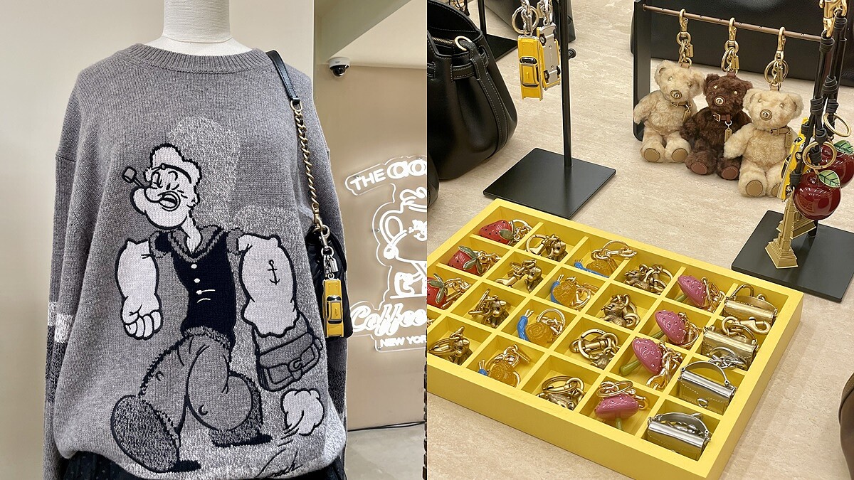 概念店囊括齊全的新品項,其中迫不及待要跟大家分享的是Blackpink Rosé也曾經在私服穿過的大力水手卜派聯名系列,男女生皆可駕馭的卜派毛衣最為推薦,可以發現卜派手上拿的正是Coach的Tabby包呢!本季Coach推出了許多可愛吊飾,像是立體Q版的草莓、蘑菇、大蘋果,還有寫實紐約風的計程車吊飾,以及適合年末節慶氛圍的泰迪熊。
