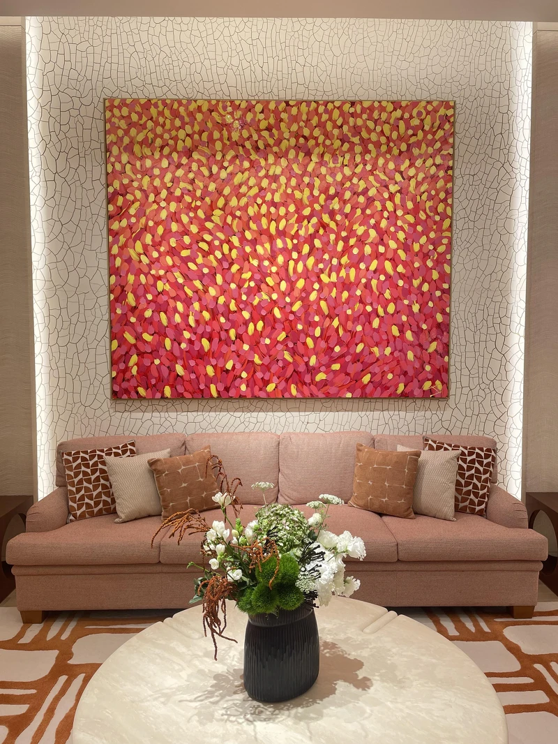 店內每個空間皆點綴多幅藝術作品,為逛街體驗增加詩意優雅的氛圍,每一處都值得留意欣賞。店中多數作品以抽象概念和鮮明的色系為主,包括中國藝術家王智一為路易威登SOGO復興店特別創作的幾何形狀、線條與色塊組成的訂製作品;路易威登聯手美國當代藝術家詹姆斯特雷爾James Turrell展開的畫廊合作Akhob, By James Turrell中,名為《Crystals》的永久沉浸式裝置;西班牙藝術家費爾南多達薩費爾南德斯 Fernando Daza Fernández以路易威登花朵圖案為靈感打造的手撕紙藝術作品……以及來自法國藝術家暨設計師蘇菲馬勒布朗奇Sophie Mallebranche所打造的精鋼金屬絲編織網牆面,都是非常美麗的作品。