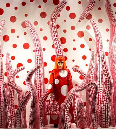 日本知名藝術家草間彌生2012年7月12日在紐約惠特尼博物館的展覽揭幕,這個展覽回顧草間彌生這位充滿傳奇性的藝術家超過六十年的作品。藉由傳統帶來的力量,在Marc Jacobs的藝術指導之下被強調出來,路易威登欣然將其第一個回顧展獻給草間彌生。草間彌生與Marc Jacobs合作並詮釋出最具有象徵草間彌生藝術作品的系列。