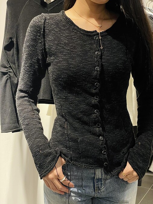 喜歡帥帥風格的辣女孩們推薦這款合身的針織衫,寬鬆的織紋帶來微微的透肌感,下襬抽鬚則注入叛逆氣息,穿起來顯瘦之外也能巧妙凸顯身型優點,看起來普通,但穿上身才明白它的好看!