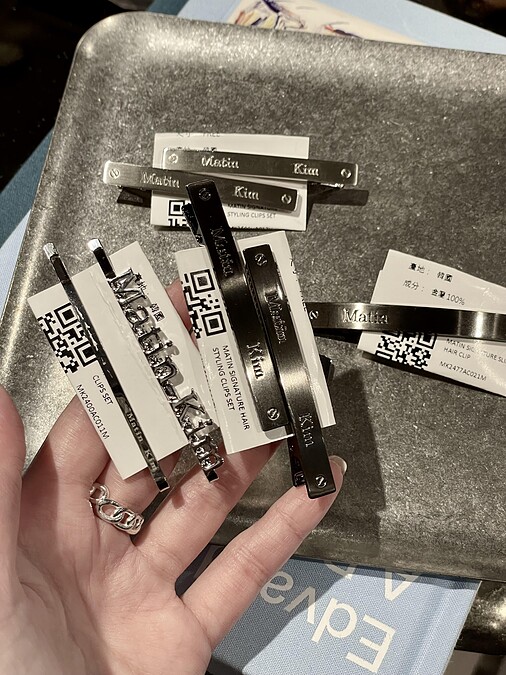 Matin Kim採用品牌標誌性的銀色金屬元素,設計出了幾款銀色的髮夾組,有字母設計的款式,也有簡練的長條矩型髮夾,皆是毫不挑人的萬用百搭款,加上親民的價格,完全可以閉眼入。