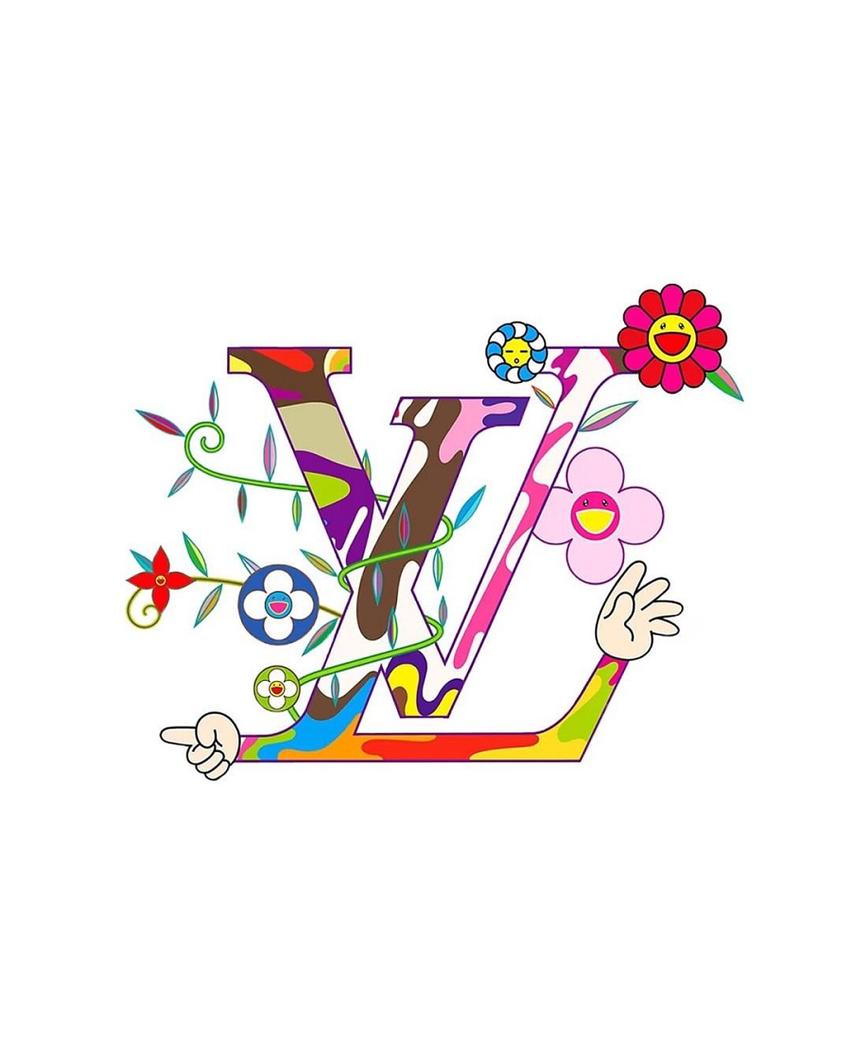 LV率先公開與村上隆的聯名合作主題,經典的品牌Logo上有著繽紛的色彩、微笑小花、植物枝枒以及小手的加入,整體延續村上隆的超扁平藝術設計風格,也為本次的聯名合作定下基調——高彩又活潑!