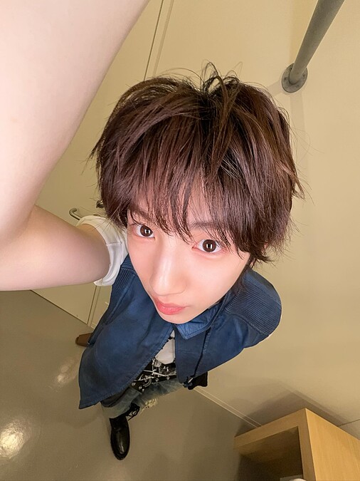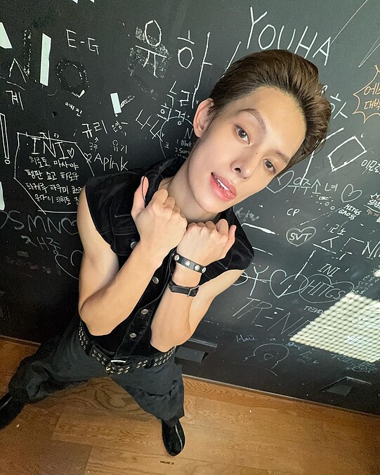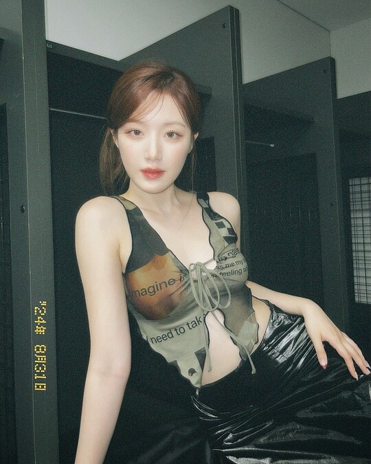 拍攝手法是將手機舉過頭並停在接近 90 度的位置,可以搭配 0.5 倍的廣角,讓照片看起來更有空間感,但四周又不會明顯變形;由上往下拍會形成頭大身體小的奇特比例,也可以讓全身都入鏡,能夠當作穿搭照,既搞怪又有個性,是許多韓星經常使用的 Y2K 拍照技巧。