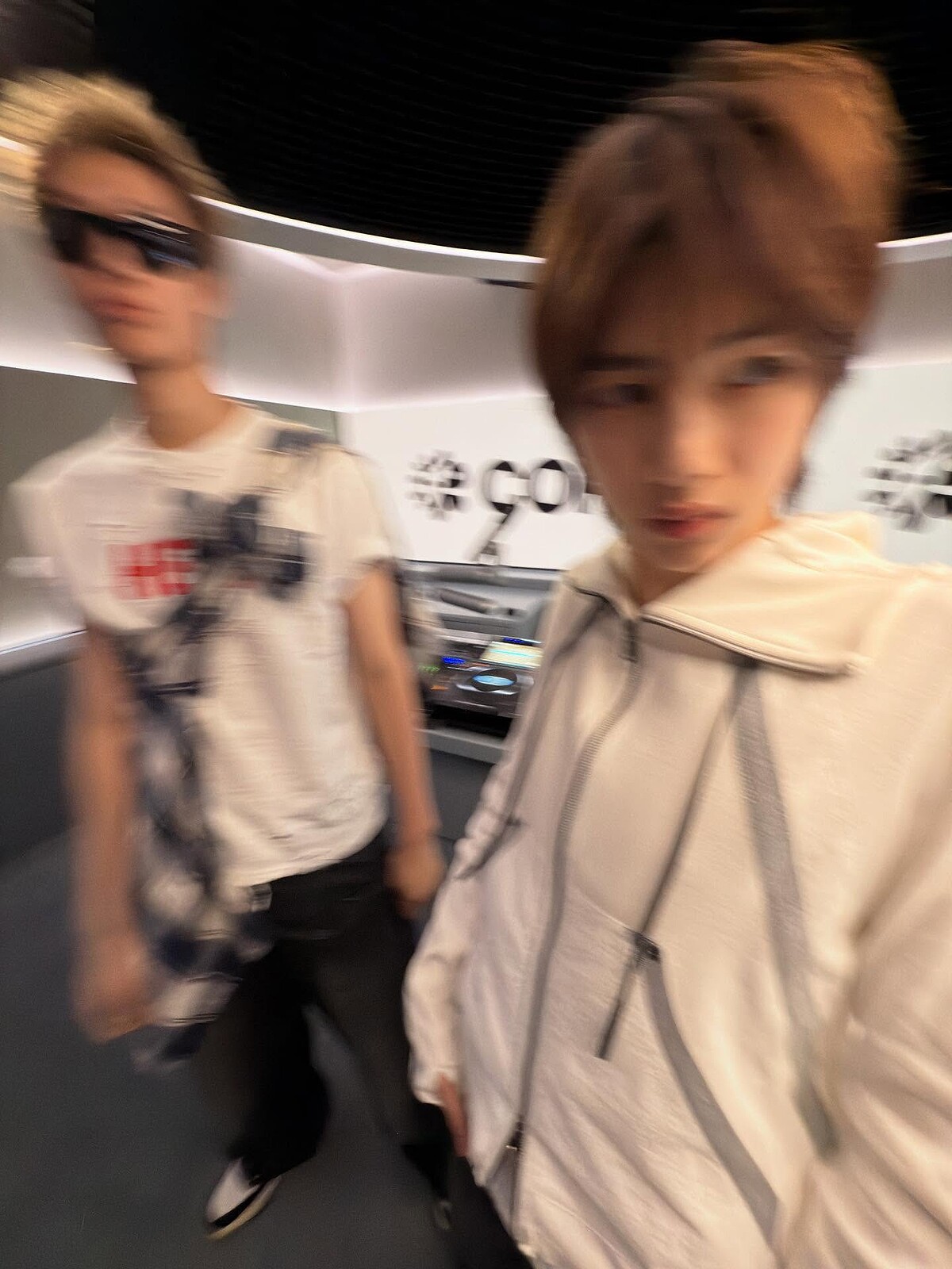 相機為了要使入光亮充足而導致快門變慢,此時恰巧碰撞到鏡頭,或是被攝者移動就會有殘影,雖然這種照片對某些人來說是失敗品,但如果你想要呈現 Y2K 拍照風格的話,反而是一種特別的手法喔!使用方式很簡單,在低光源的環境開啟閃光燈,並在拍照的瞬間晃動手機就能有同樣的效果。