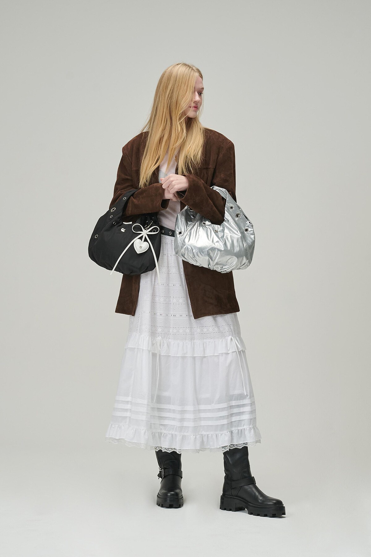 MONDE洞洞造型半月包:俐落的包身輪廓同樣有著高功能性,包身多個不同大小的洞洞造型能增添視覺美感也可以掛自己所愛的吊飾,符合時下趨勢,展現個人風格。