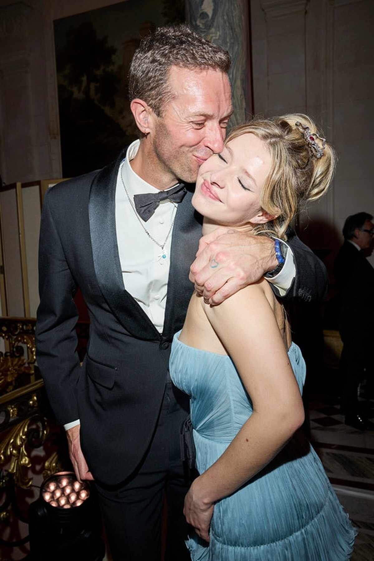 Apple Martin在巴黎名媛舞會的登場十分耀眼,有著Valentino特別為他訂製的水藍色雪紡禮服加持,活潑的平口設計,搭配上層層堆疊的雪紡荷葉裙襬,腰間的黑色蝴蝶結為整體造型加入甜美點綴,耗時750小時打造,襯得他仙氣飄飄又不失少女氣息,也讓人更加期待未來Apple Martin的亮相!