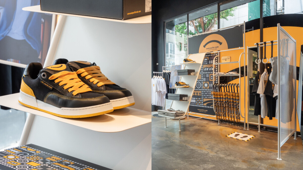 雙方台灣限定聯名鞋款以ept人氣鞋型之一FAT滑板鞋為基底改造,在漆黑的鞋面上運用鮮黃色的笑臉、鞋帶、鞋底、縫線等細節,令百搭的「小黑鞋」變得十足搶眼,同時具備濃郁的街頭個性。