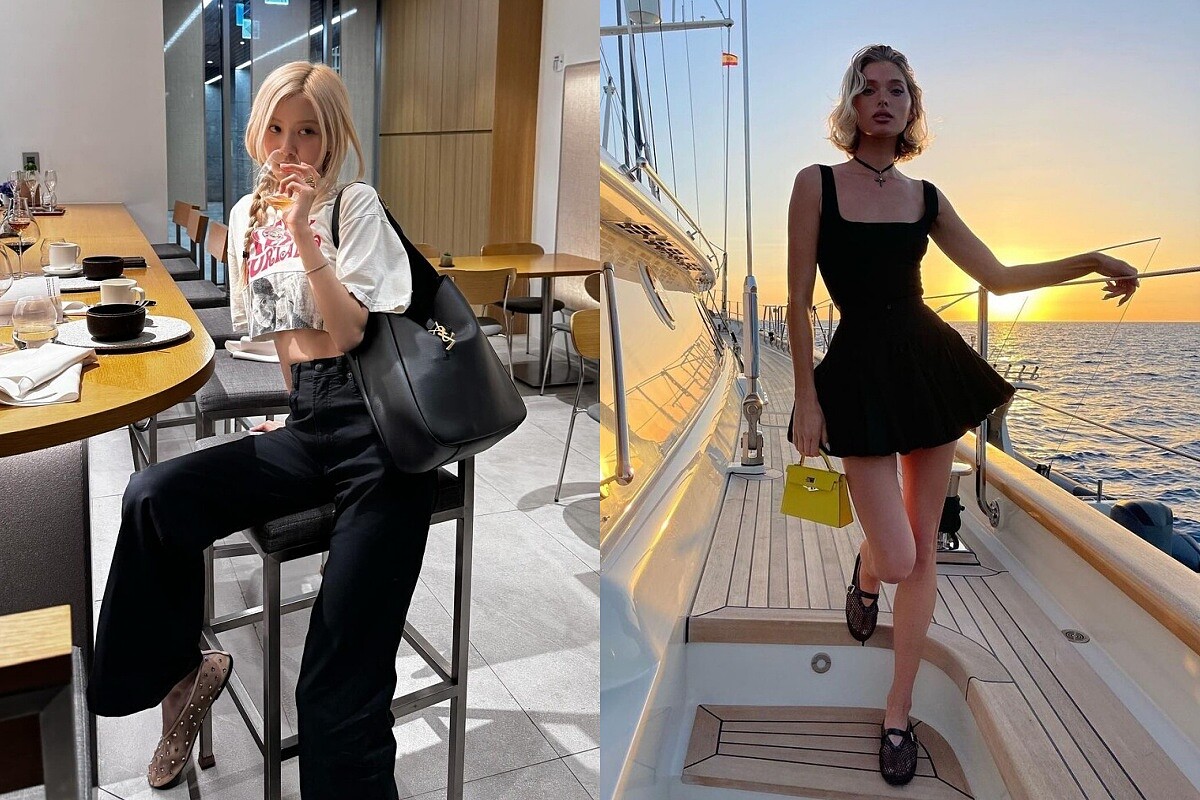 在強調透明感的2024夏季中,Alaïa漁網鞋再度重回熱門單品,在超模Elsa Hosk的穿搭中也時常可以看到,除了大格的漁網鞋之外,Rosé的造型中也穿上Khaite水晶網紗鞋質感更細膩優雅。