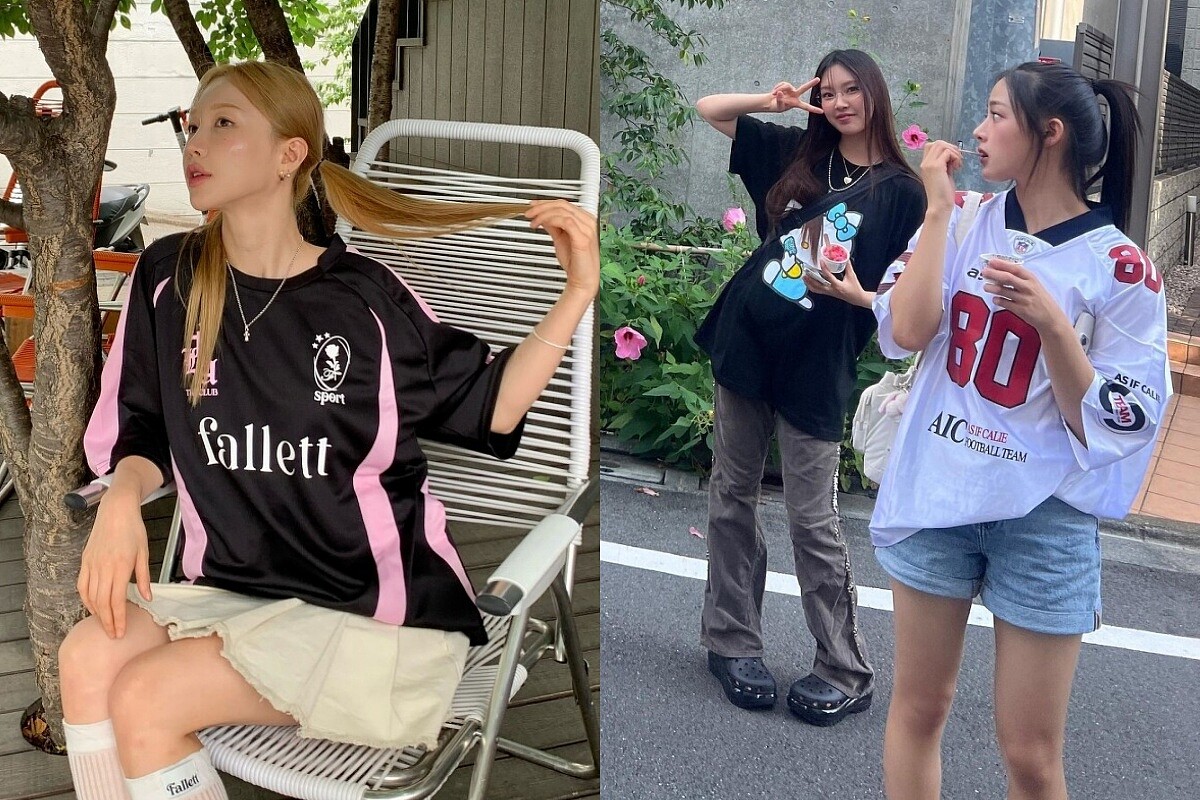 同樣在「Blokette」穿搭熱潮中脫穎而出的球衣搭配,在2024年夏季直接到達頂峰,寬鬆球衣結合蕾絲、芭蕾鞋等的穿搭,在Jennie、張員瑛、Bella Hadid到近期Newjeans所帶起的流行風潮之下,成為許多街頭風愛好者的必備單品。
