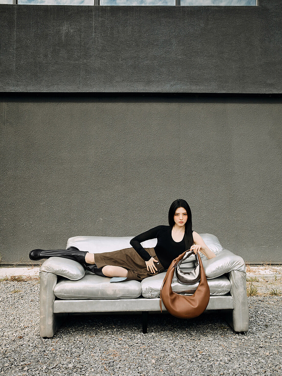 在此系列中,深受喜愛時髦精喜愛的 Toni 流浪包推出香醇巧克力色調,以柔軟的 PU 材質與慵懶包型,將人們的日常造型注入高級鬆弛感。