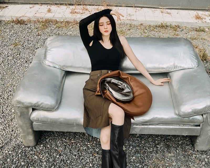 此包款除了外型吸睛,更具實用性質,而韓韶禧身穿的 Jett 直筒靴以延伸至膝蓋的靴筒設計,拉長身材比例,並使用柔軟材質打造,讓穿著者擁有絕佳舒適性,適合各種腿型的人們穿著,任何造型都能搭配出個人風格。
