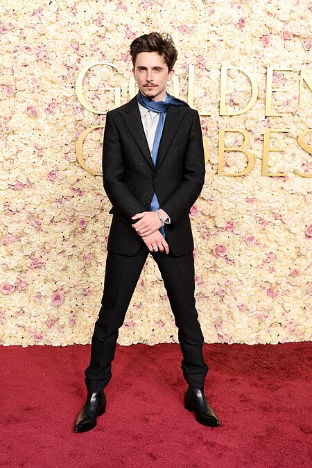 以《巴布狄倫:搖滾詩人》獲得提名的提摩西夏勒梅,再度延續電影風格,以Tom Ford西裝造型亮相。