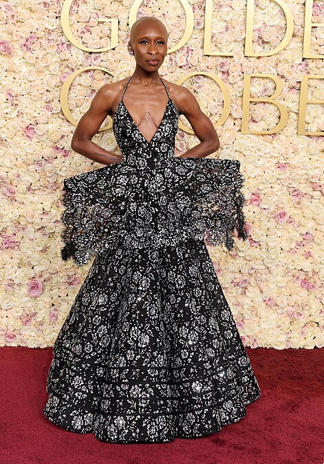 搭擋Ariana Grande演出《魔法壞女巫》的Cynthia Erivo,她的時尚造型從電影宣傳期就備受矚目,金球獎紅毯上她選擇了Louis Vuitton的花卉禮服華麗現身。