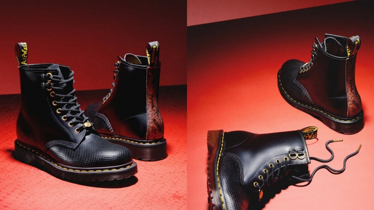 Dr.Martens也在蛇年推出限定鞋款,在經典的八孔靴上融入蛇年的細節,除了鞋頭處皮革換上蛇紋打造層次感之外,鞋後跟處的皮革飾帶則換上紅黑色的蛇紋圖樣作為亮點。
