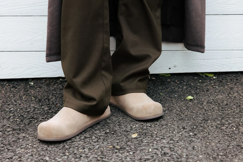鞋款使用了極簡圓弧設計與澎軟雲朵鞋墊,希望藉此設計讓人們感受「無適應期」的穿著體驗,鞋身運用的材質也不馬虎,使用了高級頭層牛皮製作,讓你穿脫快速又方便。