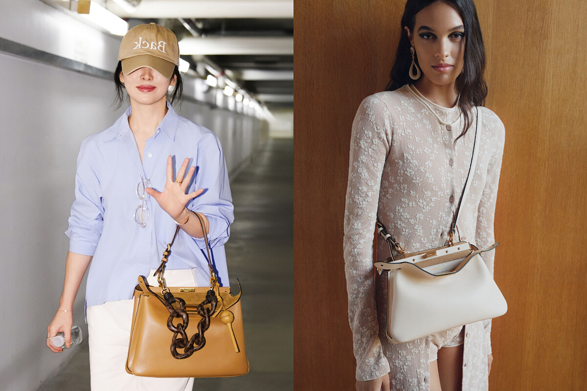 Fendi經典Peekaboo自2024秋冬推出柔軟版本的Soft系列後,以慵懶姿態加入靜奢風大包行列,獲得宋慧喬多次欽點,成為品牌人氣明星單品,不過一開始Peekaboo Soft僅推出較大體積的中號、大號,適合職場女性、自帶颯氣的輕熟齡女性;2025春夏,Fendi亮相全新Peekaboo Soft Small款式,將這咖手袋等比例縮小,更加適合亞洲女生的身材之外,也瞄準了年輕女孩們的喜好,將Peekaboo Soft的魅力傳遞到更廣的年齡層!