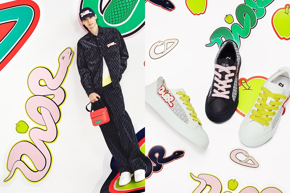 Dior在乙巳蛇年的限定系列中,與潮流藝術家Kaws合作,將蛇年形象與Kaws標誌性的「叉叉眼」結合,並搭配一顆青蘋果作為i字母上的一點,卡通畫的蛇化為Dior以及CD Logo的字樣,更在各地專門店以及櫥窗打造限定的叉叉眼蛇裝置藝術,在網路上掀起非常熱烈的討論度!
