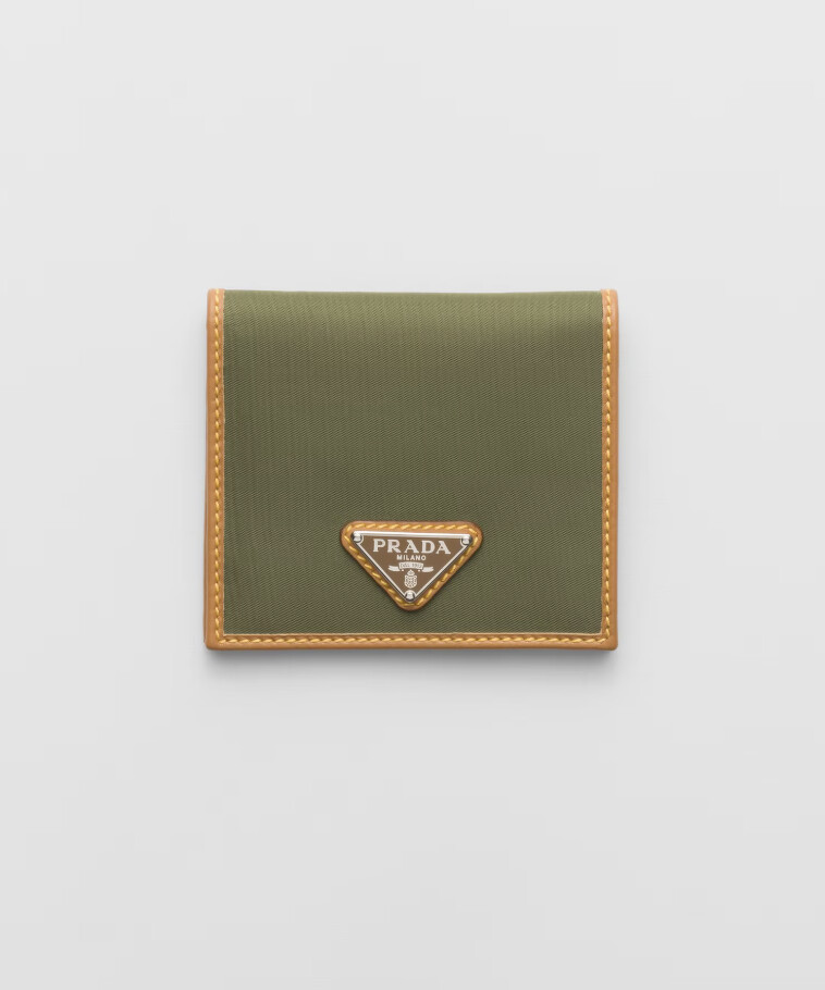 Prada 這款Re-Nylon短夾以軍裝色及焦糖雙色的再生尼龍製成,具備環保理念與經典三角標誌,以及多卡槽與紙鈔隔層,實用又具有潮流感,時髦指數五顆星。