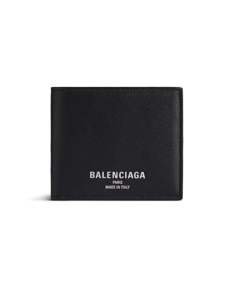 Balenciaga Credit方形折疊皮夾,是一款以黑色光滑小牛皮搭配銀箔壓紋的極簡設計皮夾,具有精品質感,但以簡約又具設計感為表現,推薦給簡約控。