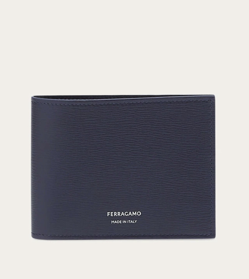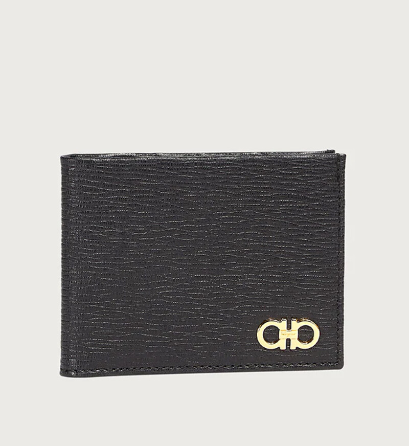 Ferragamo Gancini 錢包是以錘打小牛皮設計而成,展現品牌工藝的價值與技術,飾有品牌經典的log,適合商務場合使用。