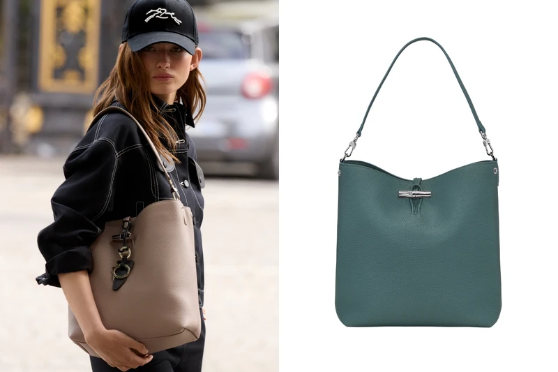 Longchamp的經典竹節系列Le Roseau也以精緻的皮革包深與竹節扣設計深得人心,俐落的包身線條散發經典優雅質感,搭配可調節拆卸的肩帶,無論斜背、肩背或手提都靈活百搭,更是品牌大使金世正的穿搭標配包款之一。