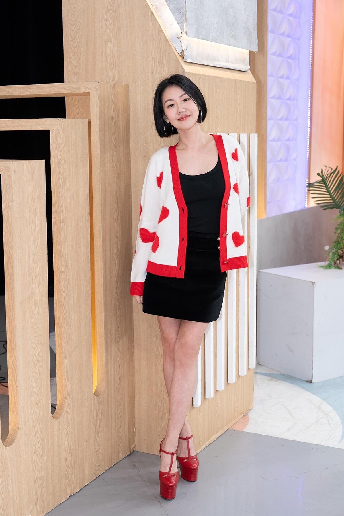 除此之外,小S也選擇了 alice + olivia Bradley 愛心針織外套作為較為休閒隨興的造型選擇,溫暖的羊毛材質除了保暖,搭配白底紅愛心圖案也能成為造型重點。