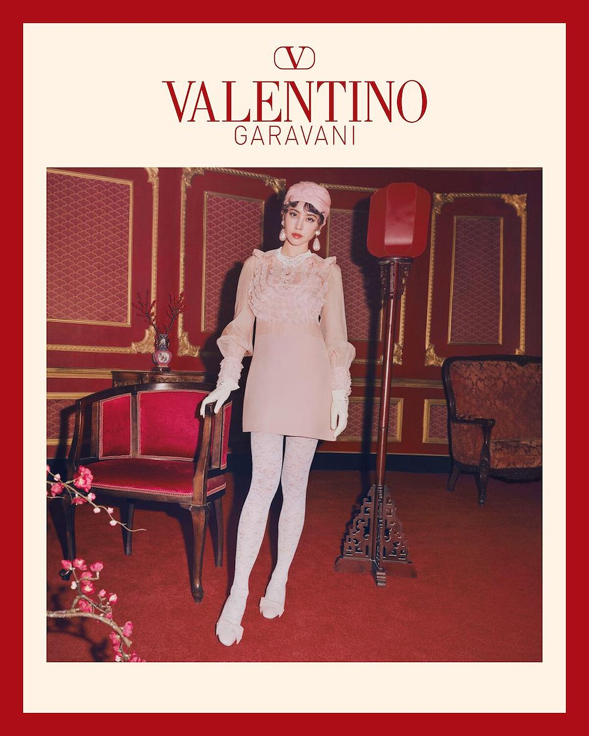 而同樣出演 VALENTINO 新春系列特輯的蔡依林,則選用淡粉色洋裝搭配蕾絲褲襪,展現優雅細膩的浪漫印象,淡粉色造型同時也是春節紅色造型外的另一種好選擇!