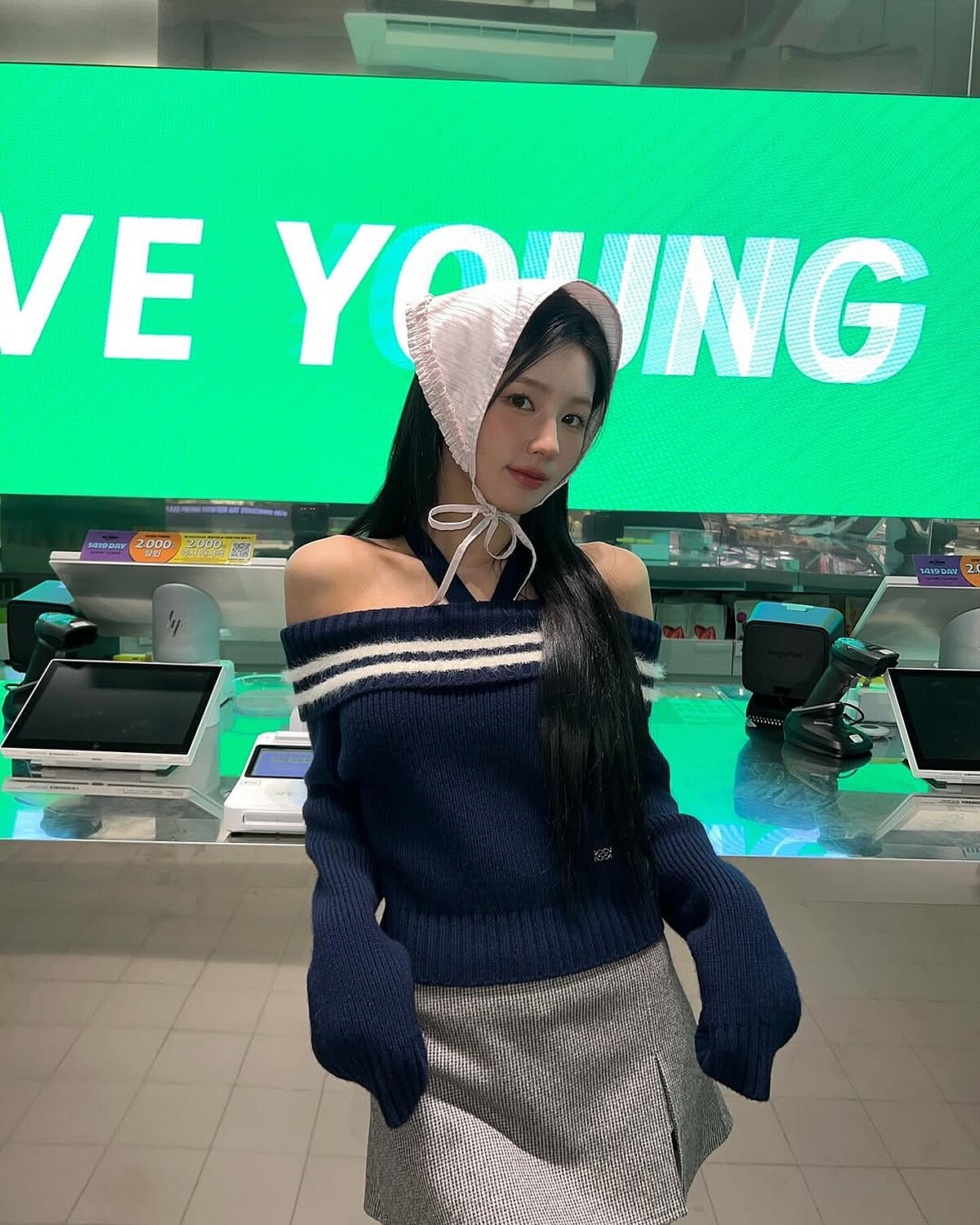 (G)I-DLE成員美延也是隱藏的私服殺手,許多她穿過的單品都會詢問度激增,如這件結合繞脖和平口設計的針織毛衣來自韓國設計品牌Kijun,帶有一點學院風和知性的色彩,替穿搭注入別緻感,另外美延還搭配了從去年秋冬一路流行到今天的頭巾,穿上簡約迷你裙的樣子看起來無辜又可愛。