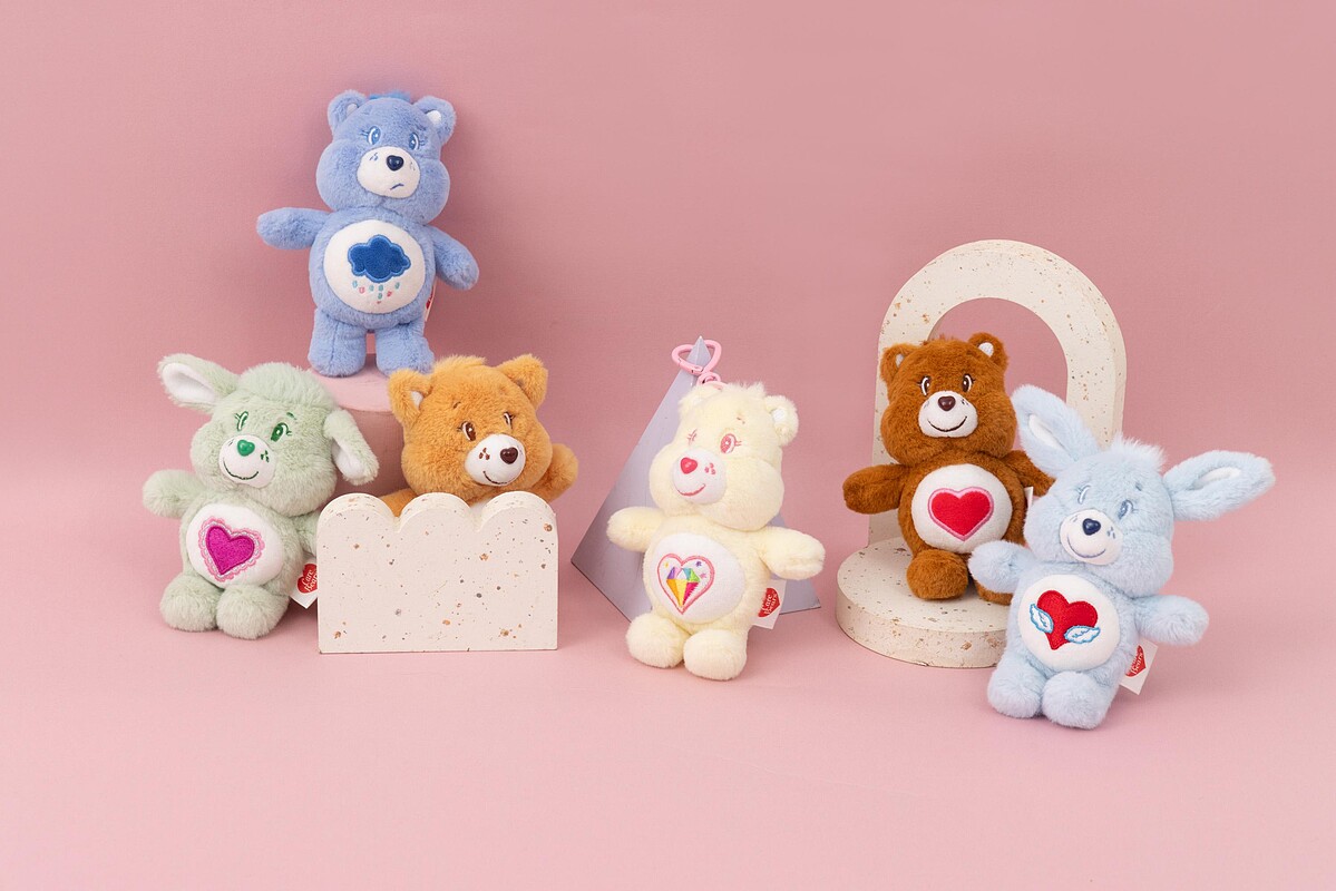 「The Care Bears Family 幸運盲盒」系列總共有推出六款造型的玩偶吊飾,包括Tenderheart Bear(溫柔小熊)、Grumpy Bear(牢騷小熊)、Sparkle Heart Bear(鑽石小熊),以及Care Bears Cousins角色成員Gentle Heart Lamb(溫柔小羊)、Proud Heart Cat(驕傲小貓)和隱藏版Swift Heart Rabbit(迅捷小兔)。