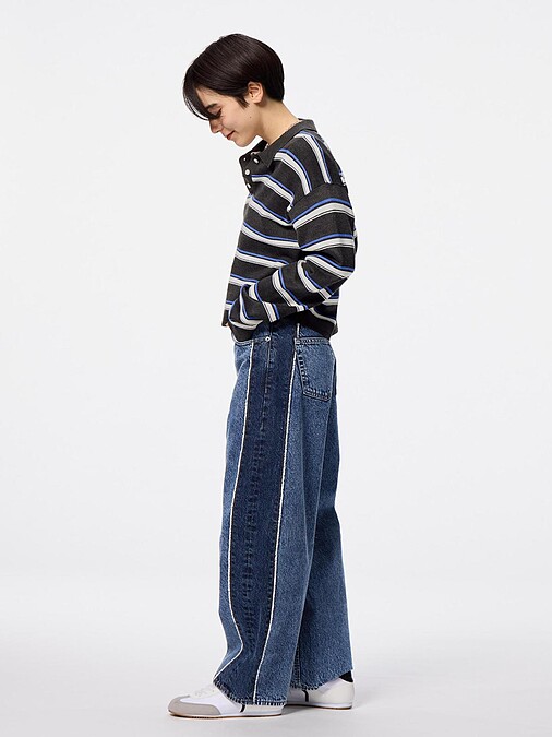 近年,時尚圈吹起一股錐形褲風潮,不少品牌像是:Diesel、Balenciaga、Thug Club 等都推出此褲型作為主打款式,而 GU BARREL LEG 拚色錐形牛仔褲被稱為「脆神褲」,寬鬆的線條符合時下趨勢,而酒桶般的褲型曲線更將逐漸收窄的下襬穿上後呈現立體的視覺層次,讓穿著者能夠有效修飾臀部與腿部線條,因此也有脆友表示,好入手的價格,彷彿是設計師平替款。
