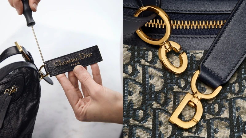 Dior在這款包上也藏了兩個精緻的品牌經典標示在其中,除了可調式提把上的CD Lock鎖扣之外,還有Christian Dior Paris標誌的大型皮革拉鍊頭的設計。