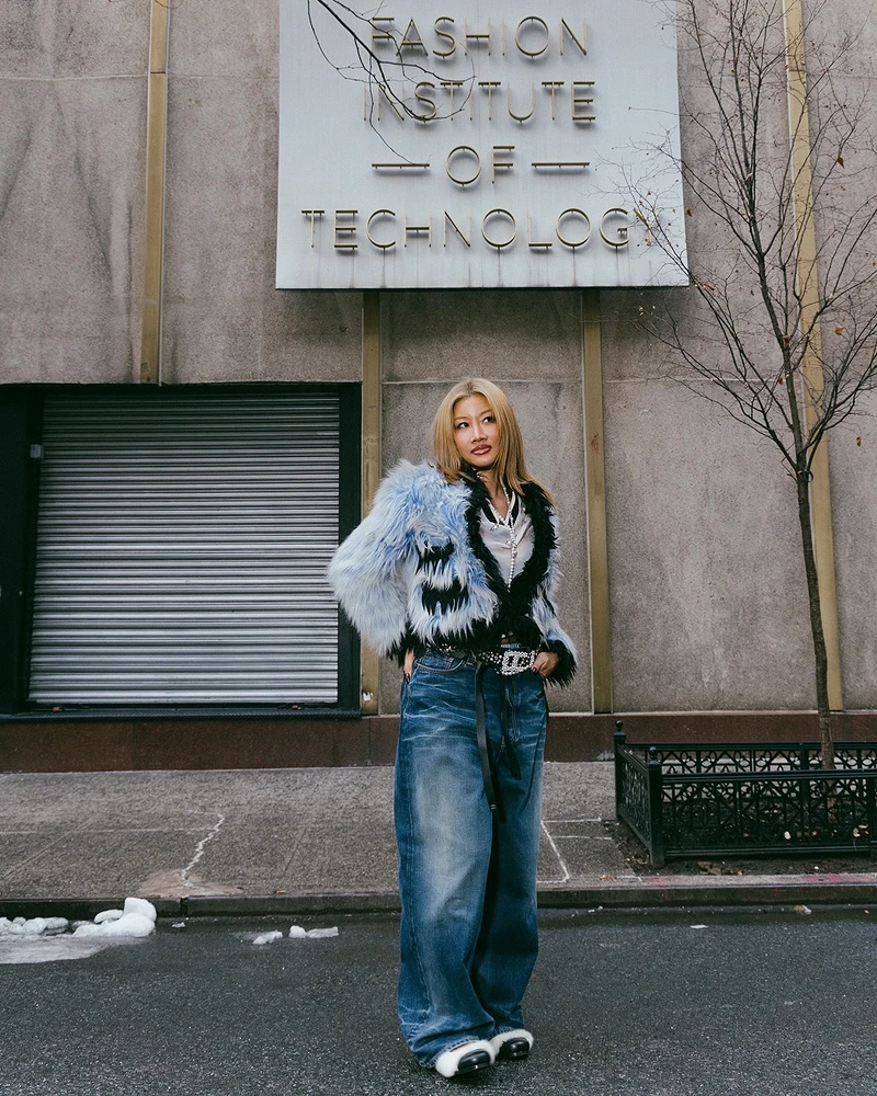 此外,擁有亮眼外型的Yoon,不僅身為AMBUSH的設計師,也是社群上引領穿搭趨勢的KOL,她也為UGG x AMBUSH瑪莉珍鞋示範了另一套街頭造型,與一件寬鬆的Baggy Jeans混搭,碰撞出甜酷的魅力氛圍。