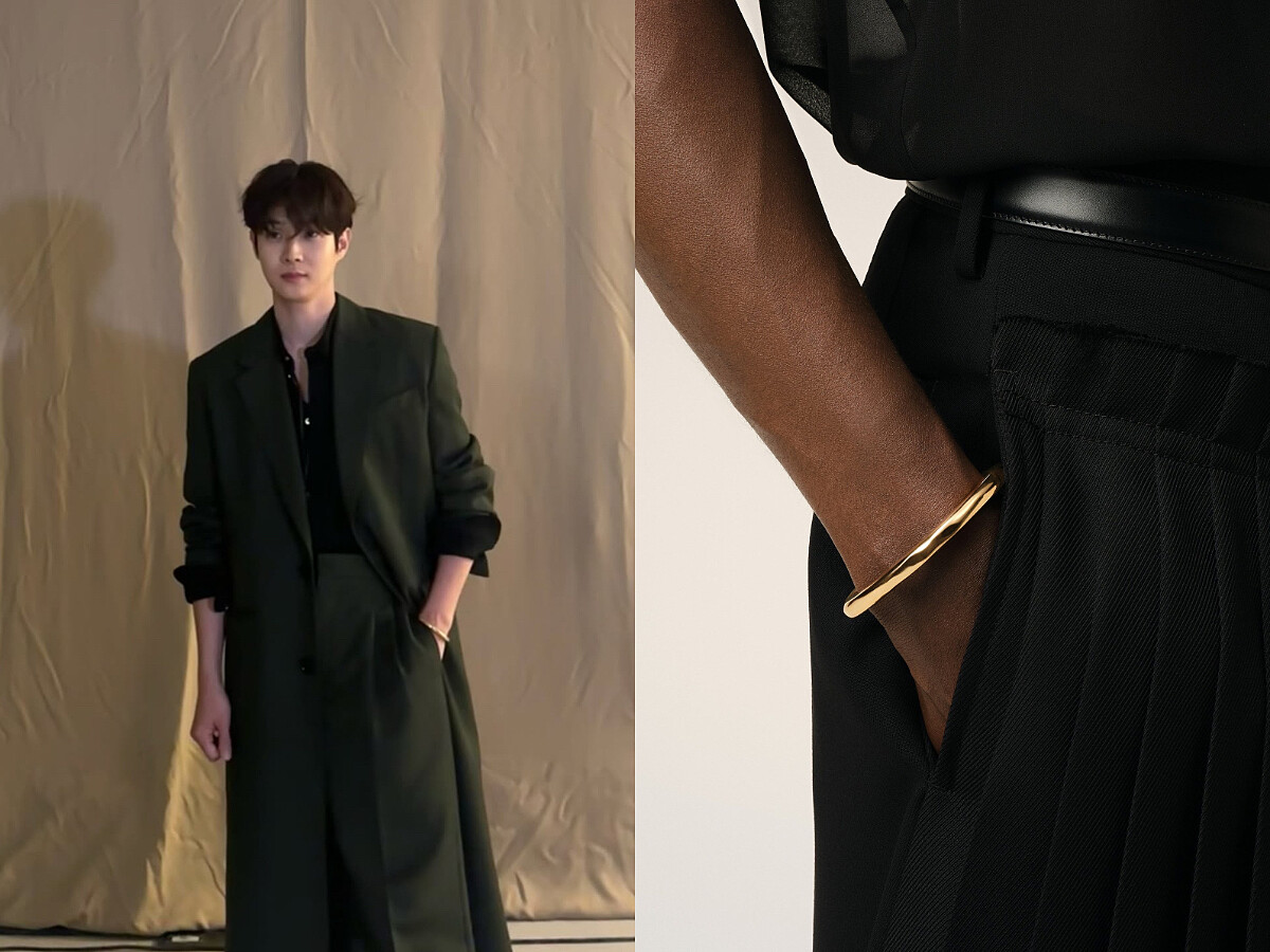 崔宇植參加AMI PARIS 2025冬季大秀時,率先穿上了秀款造型,森林綠色層次的襯衫、大衣,搭配的是一只精簡卻成功點亮整體造型的金色手鐲,細看會發現它其實是不規則的輪廓,保留自然的溫潤感。